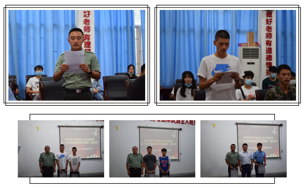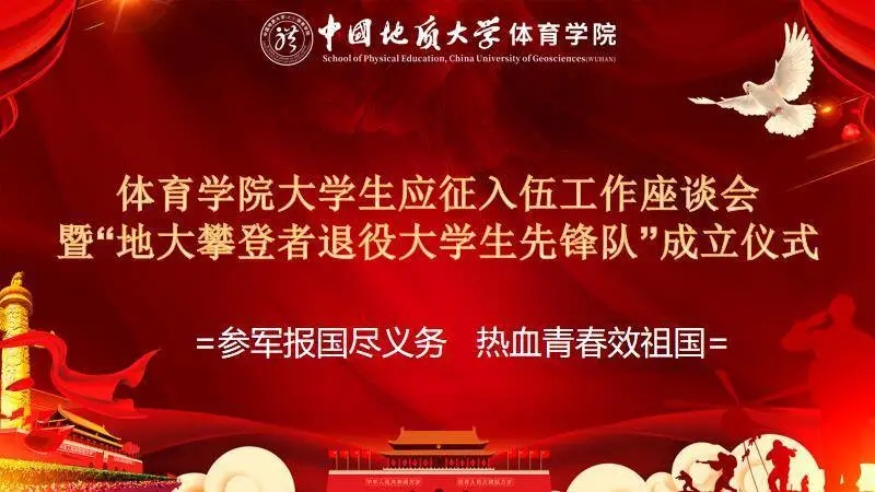2020年9月10日15:00,beat365官网在体育馆二楼会议室召开了beat365英国官网网站大学生参军应征工作座谈会暨地大攀登者退役大学生先锋队成立仪式。出席此次会议的领导有武装部副部长单红峰,学工部副部长朱继,武装部老师魏刚,beat365英国官网网站党总支书记庞岚,beat365英国官网网站党总支副书记张延平。参与本次会议的人员有beat365英国官网网站在校的退役大学生和2020年应征入伍学生,以及beat365英国官网网站部分同学。会议由131181班的陈岳峰同学主持。
