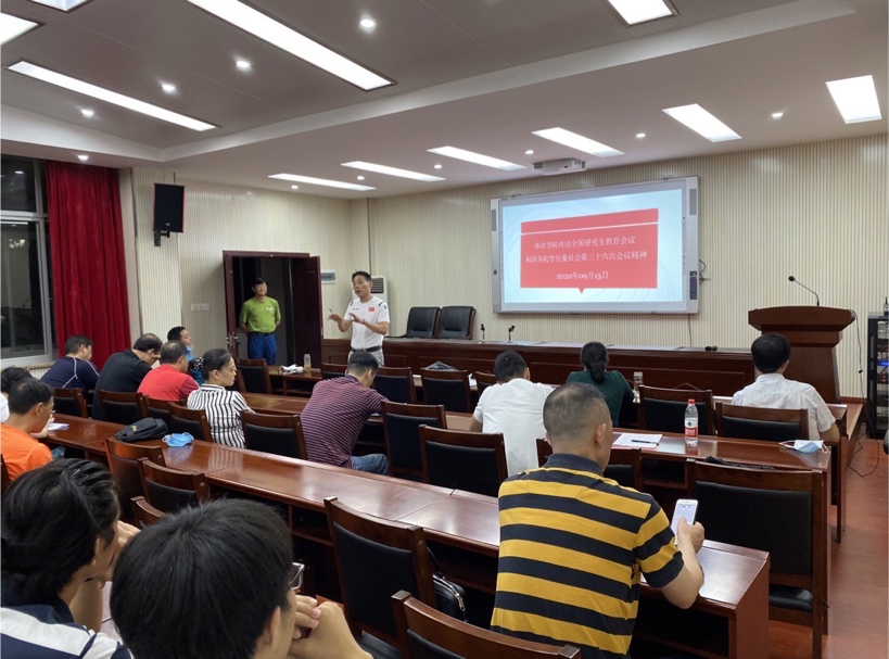 会议由董范院长做总结发言,他强调一定要贯彻落实习近平总书记关于研究生教育工作的重要指示,深刻领会2020年全国研究生教育会议精神,切实提升研究生培养质量。同时对学生提出要求:注重身心健康发展、认真对待科学研究工作,努力提升运动技术水平,为毕业就业打下牢靠的基础;对导师提出期许:履行职责,认真指导学生学位论文的撰写和修改,发挥优势,推动学生就业,为beat365英国官网网站的发展添砖加瓦。