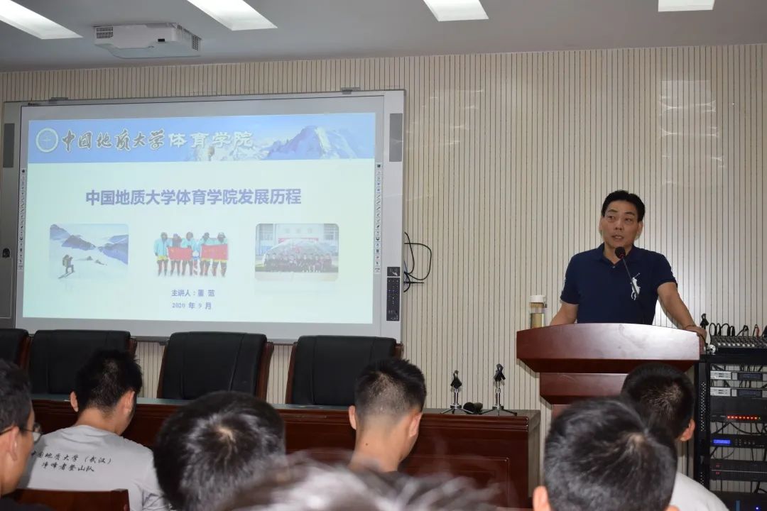 十分钟后,院长董范老师为beat365英国官网网站新生的开了堂开学第一课。这堂课名为《beat365英国官网网站的发展历程》,董范老师细数了近七十年来我校体育方面取得的辉煌成就,其中包括各种大赛累积的上百枚金牌,以及前几年刚刚被评选为全国群众性体育先进单位,许多特色项目如攀岩游泳在全国乃至亚洲都处于上流。