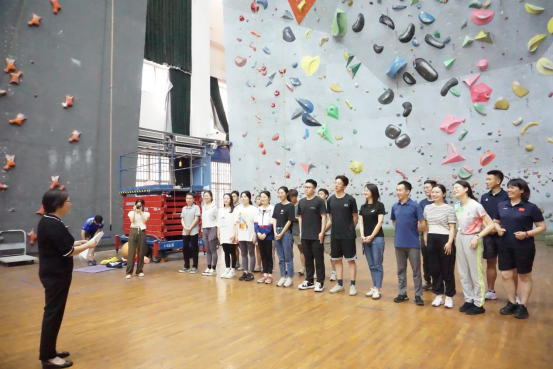 辅导员老师集中观看我校攀岩运动员速度攀岩、难度攀岩和攀石三个项目的表演展示,并在助教团队的带领下进行速度攀岩与难度攀岩尝试,通过亲身体验的方式感受攀岩运动的魅力与乐趣。