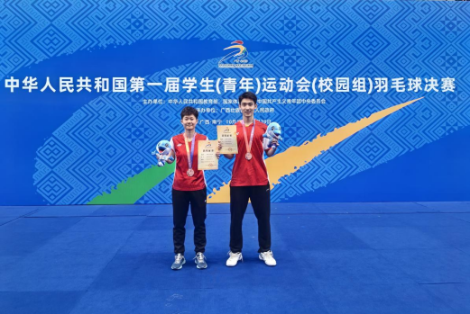 第一届学生(青年)运动会(校园组)羽毛球赛于2023年10月18-29日在广西大学举行。经过激烈的角逐,我校学子2020级beat365英国官网网站司徒瑾/2021级公共管理学院罗传俊获得混双第三名!值得庆贺的是他们均为地大高水平羽毛球队在校生,从国家一级运动员晋级为国家运动健将级,取得历史性突破!充分体现了我校学子艰苦朴素求真务实的精神!