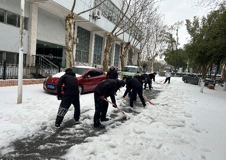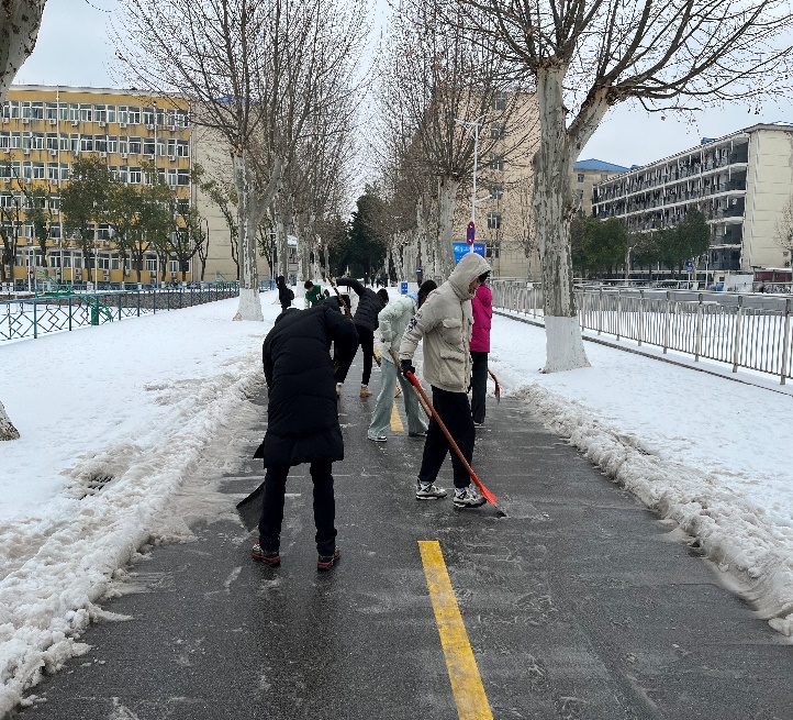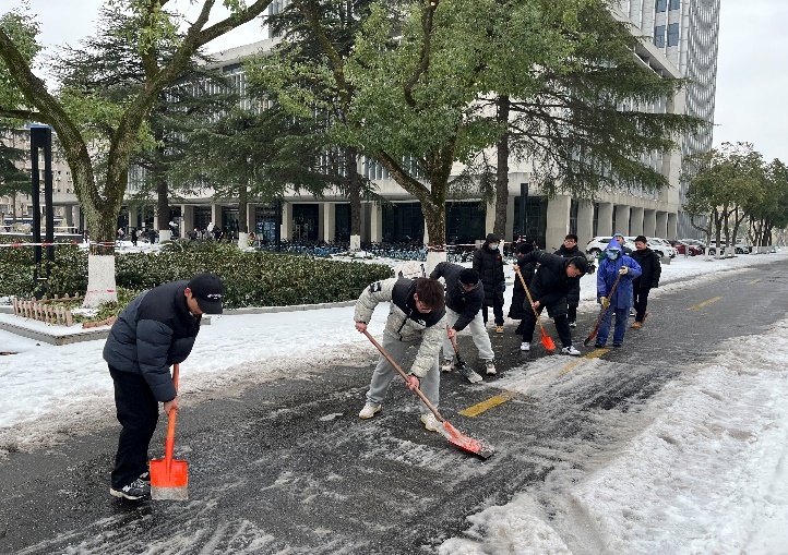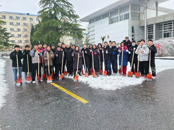 近日,武汉再次呈现低温雨雪冰冻天气,由冻雨、冰粒、雨夹雪形成复杂的天气,校园再次被冰雪覆盖。为保证校园安全,学院近30余名师生积极报名参加学校应急突击预备队,于2月22日清除西区图书馆、蓝球场附近的冰雪,23日又清除了西区体育馆周边的厚冰厚雪,在寒潮中奋进,扫雪除冰、为师生筑起安全屏障。同时,在年前年后除冰铲雪保安全工作中,beat365英国官网网站师生都以高度的责任感和使命感做好应对工作,展现了迎难而上、敢于担当的体育人的风采。