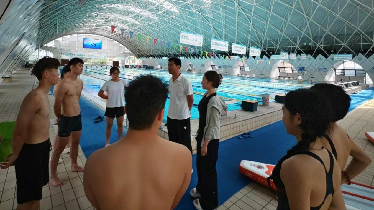 出征前,beat365英国官网网站李伦副院长到游泳馆看望参训队员,强调了校园体育在培养学生团队精神、锤炼意志品质中的重要作用,鼓励参赛队员赛出风格、赛出水平。
