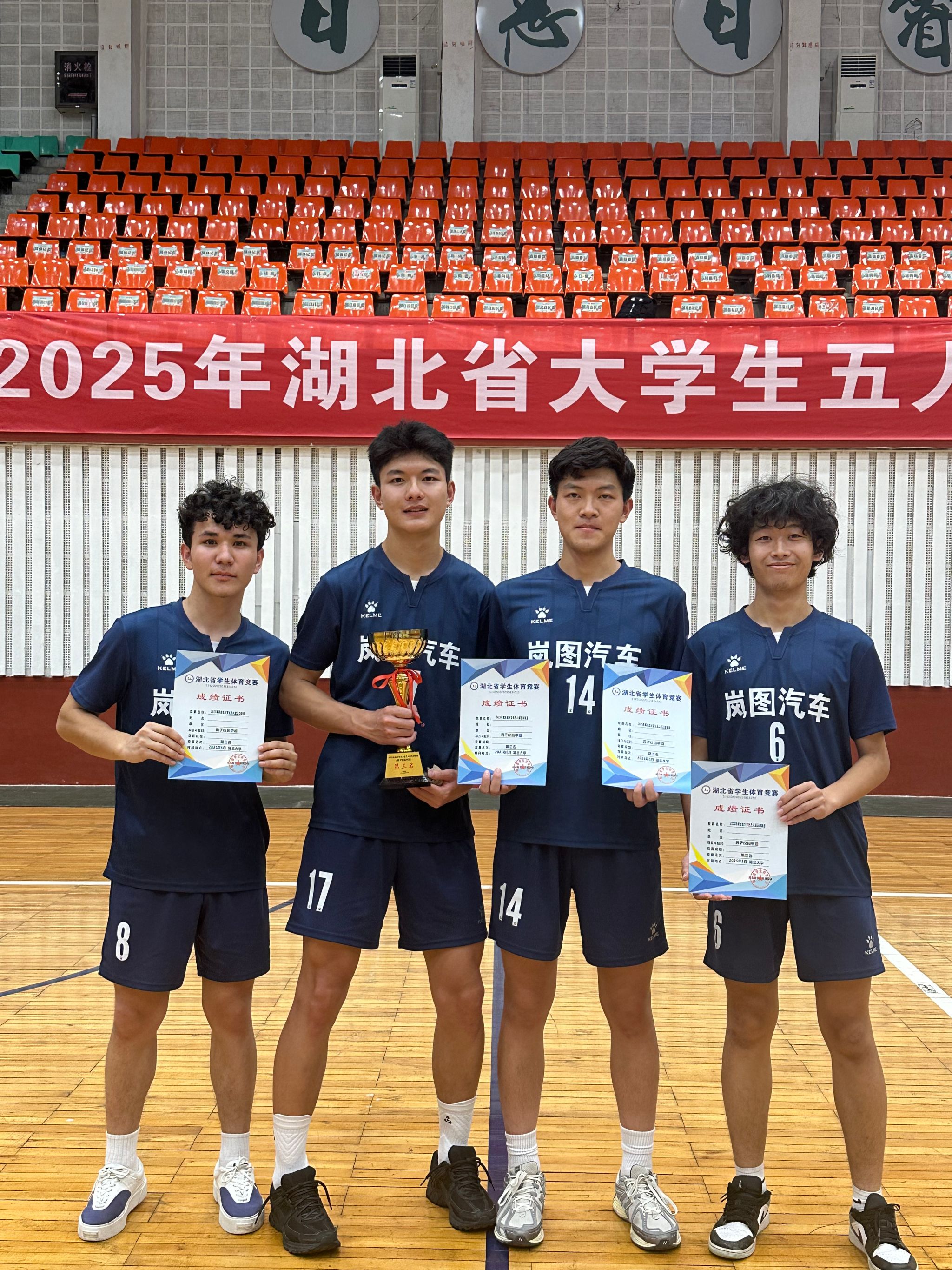 我校与华科大、湖北工大两强分在同一小组比赛。首战以0:4负于华科大后,随即面临保级战前关键一仗。在艰难时刻,教练员沉着冷静,指导队员们及时变阵,终于一改颓势,以2:0战胜湖北工大,以小组第二出线进入八强。接着1/4决赛以2:1战胜另一小组第一的长江大学文理学院进入前四。之后再次与华科大对决憾负。进入季军争夺战,在与华中师范大学艰苦比拼后,终于以3:2险胜获本次联赛第三名。