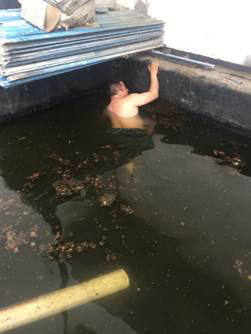 但是,突击队又发现了一个更严峻的问题,体育馆主馆屋顶因为排水不畅,在一个狭长的区域(约长30米宽四米)蓄积了齐腰深的雨水。如果不尽快疏通,积水将越来越多,如果超过屋顶的承重极限,后果不堪设想。