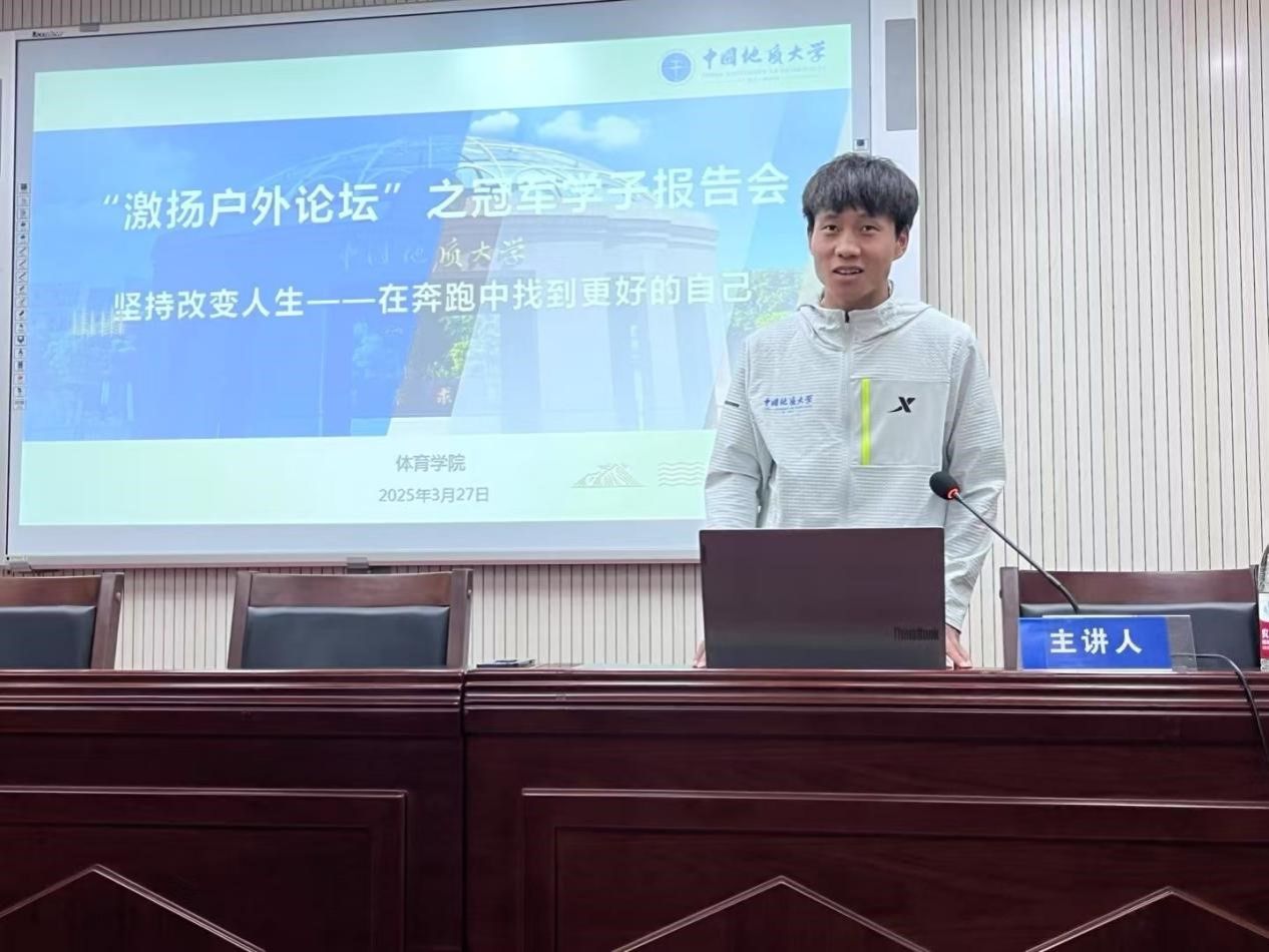 (通讯员:陈爽 刘博文)为发挥朋辈示范引领作用,赓续弘扬攀登精神,激励广大学生坚定意志、锤炼本领,3月27日,学校学生工作四部门联合beat365英国官网网站共同举办求实青年大讲堂暨“激扬户外论坛”之冠军学子报告会,本次活动邀请2025年武汉马拉松国内组冠军何杰做报告。会议由beat365英国官网网站党委副书记朱军主持,全校近200名本研学生参会。