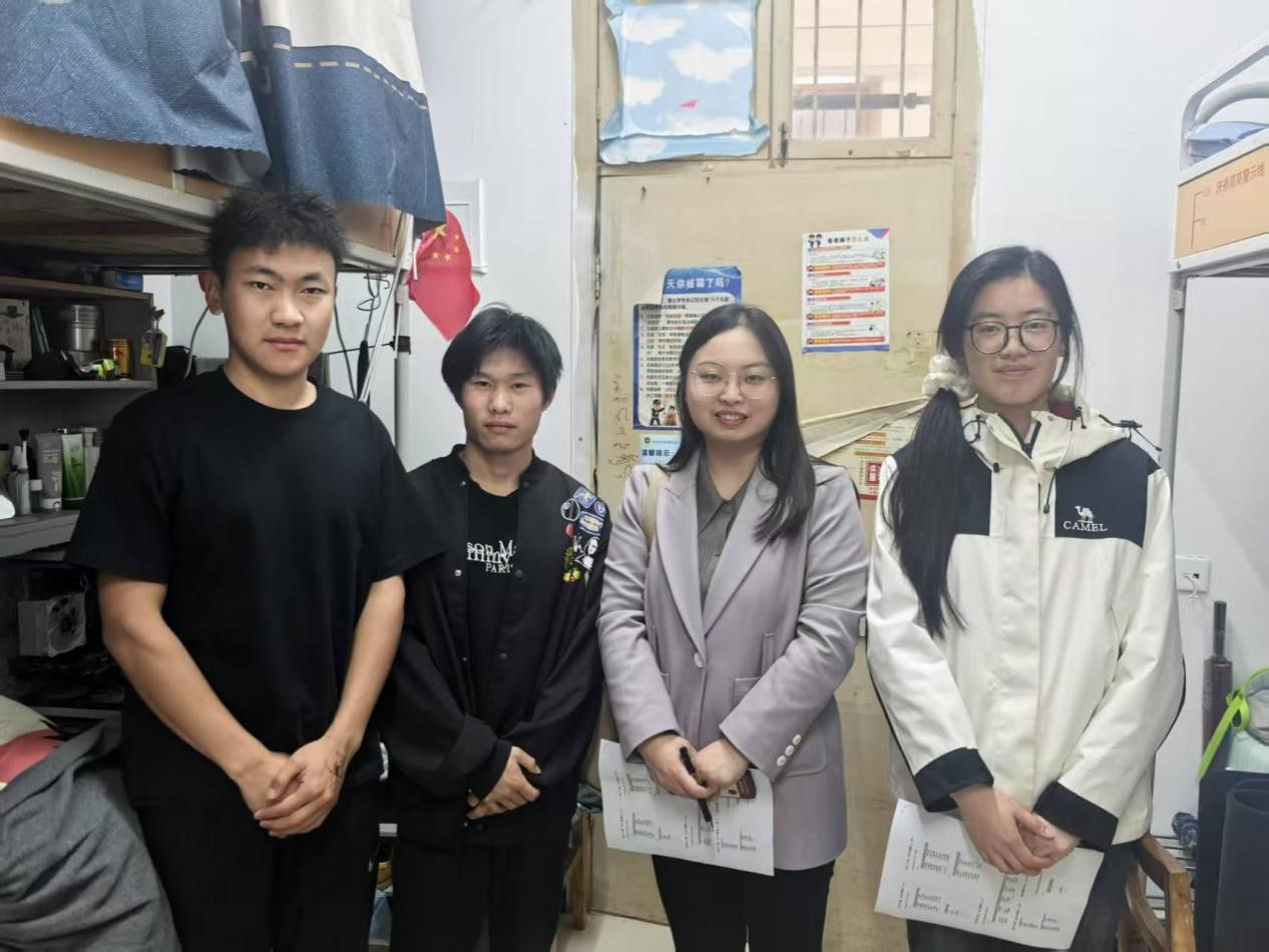 (通讯员 刘博文)清明假期临近之际,为进一步加强学生安全教育管理,全方位提升学生安全意识,营造整洁温馨的学习生活环境,2025年4月3日下午,院党委副书记朱军老师、辅导员陈爽老师与学生骨干走访本研学生宿舍,开展安全教育活动。