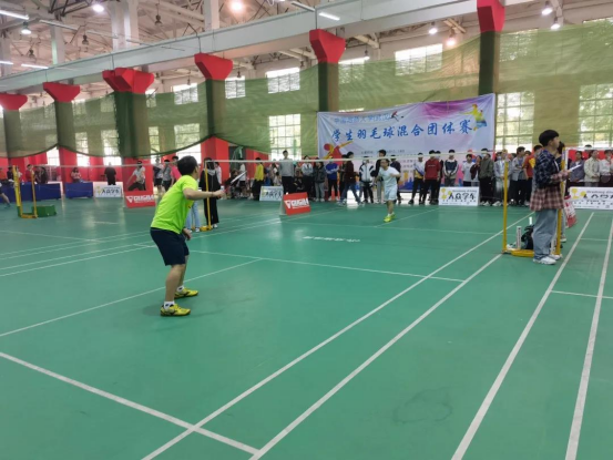 为丰富同学们的课余文化生活,培养同学们顽强奋斗、勇于拼搏的优良品质,增强同学们的身体素质,推动我校各院之间羽毛球运动的交流与发展,提高我校羽毛球运动的整体竞技水平。2021年4月17-18日,由校社团联合会主办,校羽协承办的学生羽毛球混合团体赛在北区体育馆拉开帷幕,比赛设立男、女单打、男女混双、男、女双打共五个项目。
